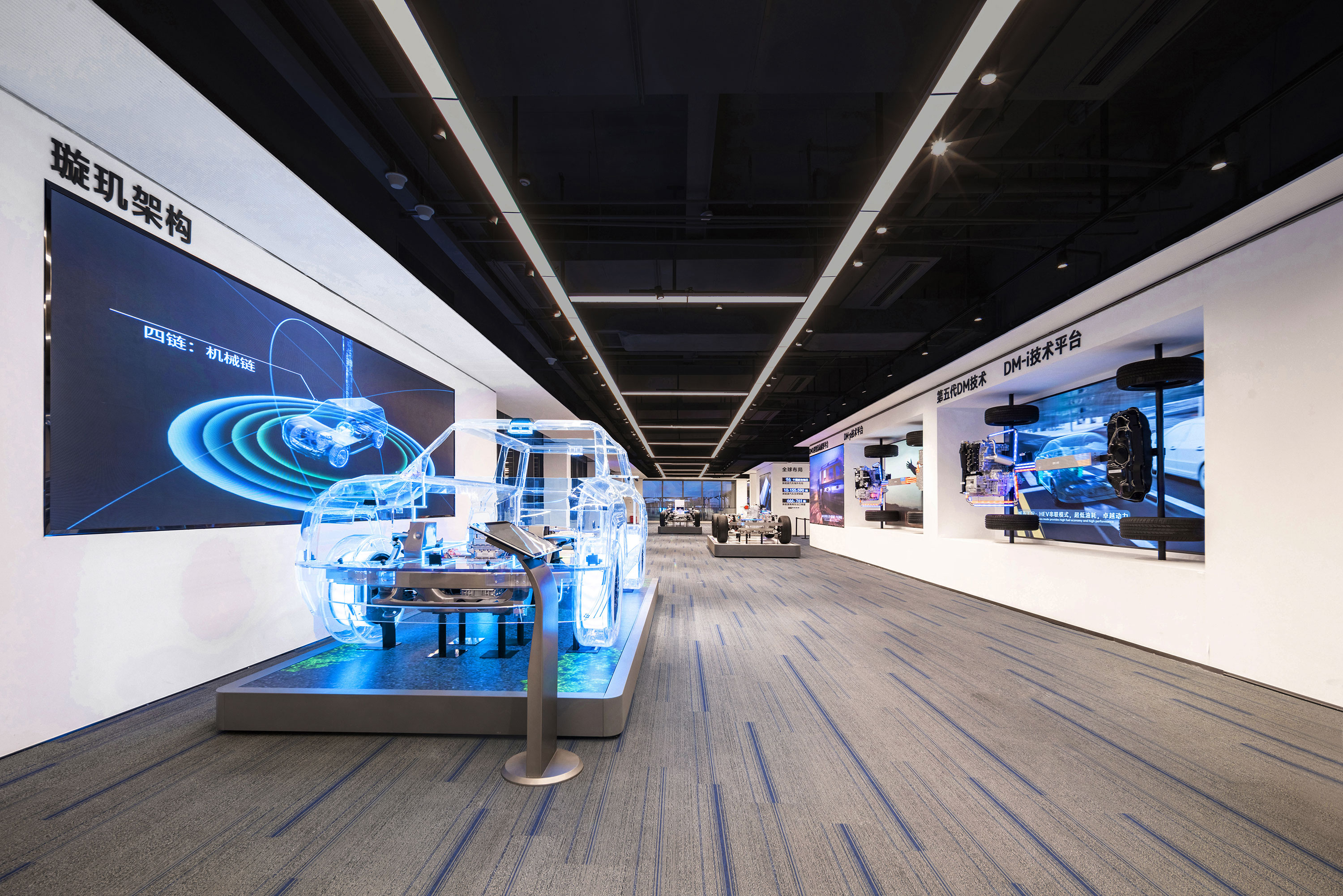 品牌技术展厅,可近距离感受比亚迪的历史成就与前沿新能源科技,探索品牌创新与未来发展的无限可能。